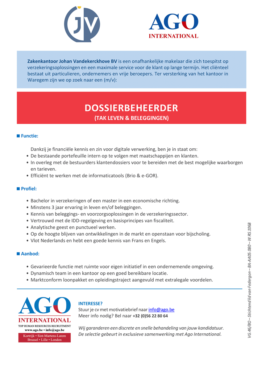 Ago International is de partner in rekrutering. Als internationaal bureau zijn we deskundig in het rekruteren en selecteren van bedienden, middenkaders en kaderleden in opdracht van diverse bedrijven.